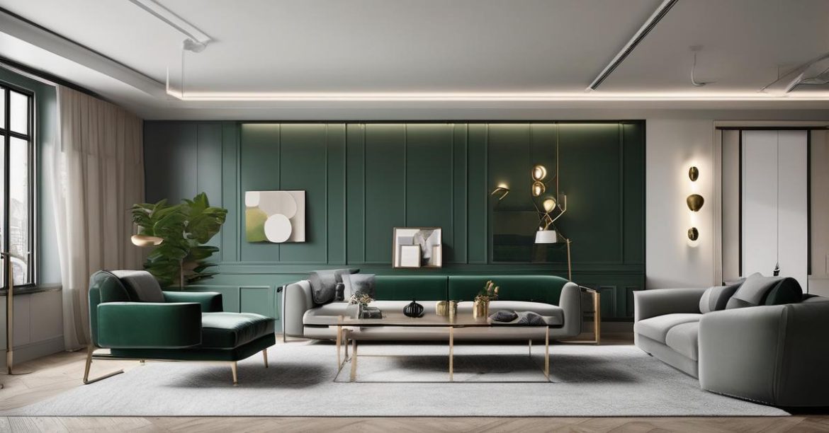 Butelkowa zieleń z szarym – duet idealny dla Twojego salonu
